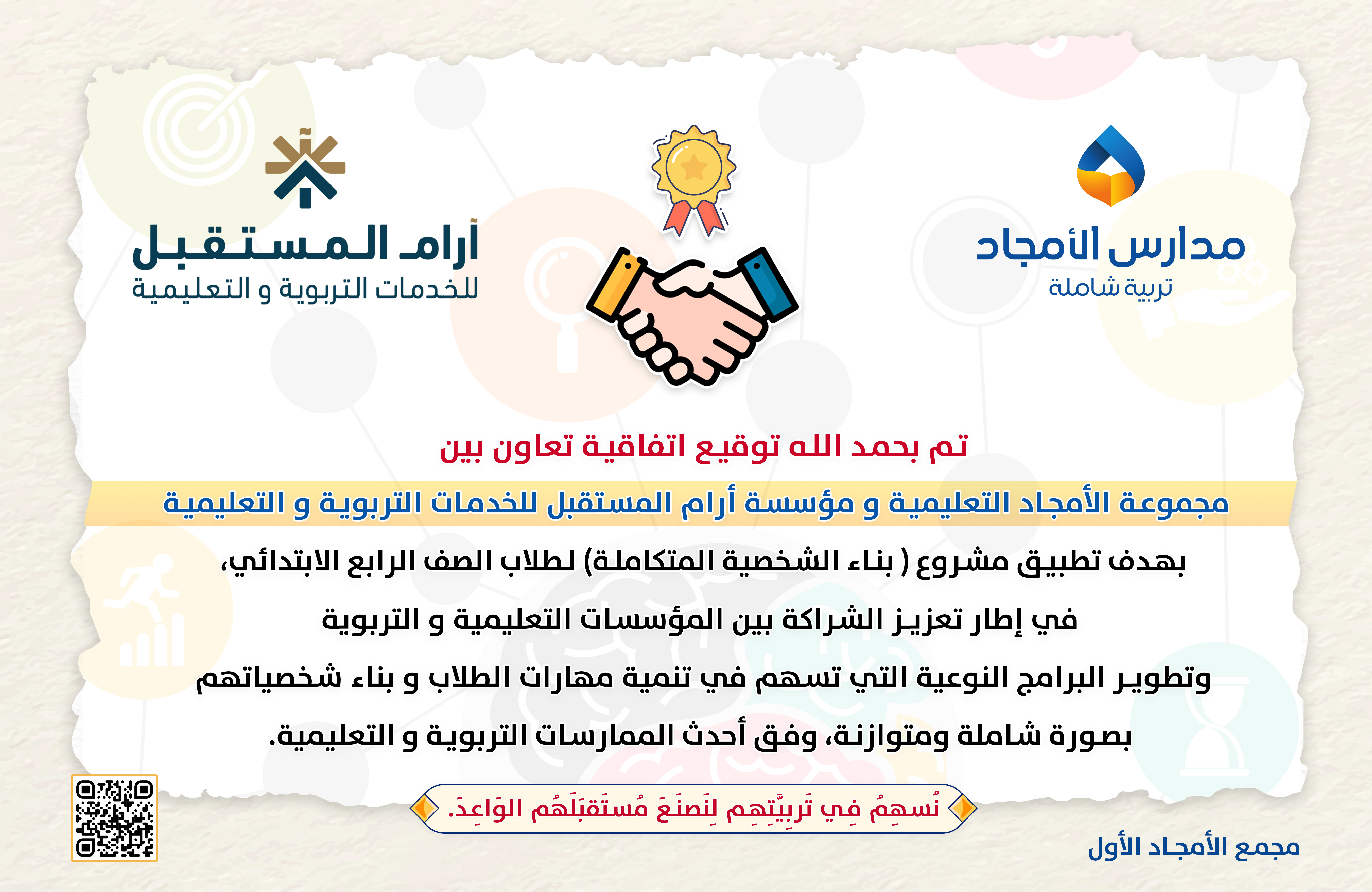 بين مجموعة الأمجاد التعليمية و مؤسسة أرام المستقبل للخدمات التربوية والتعليمية،