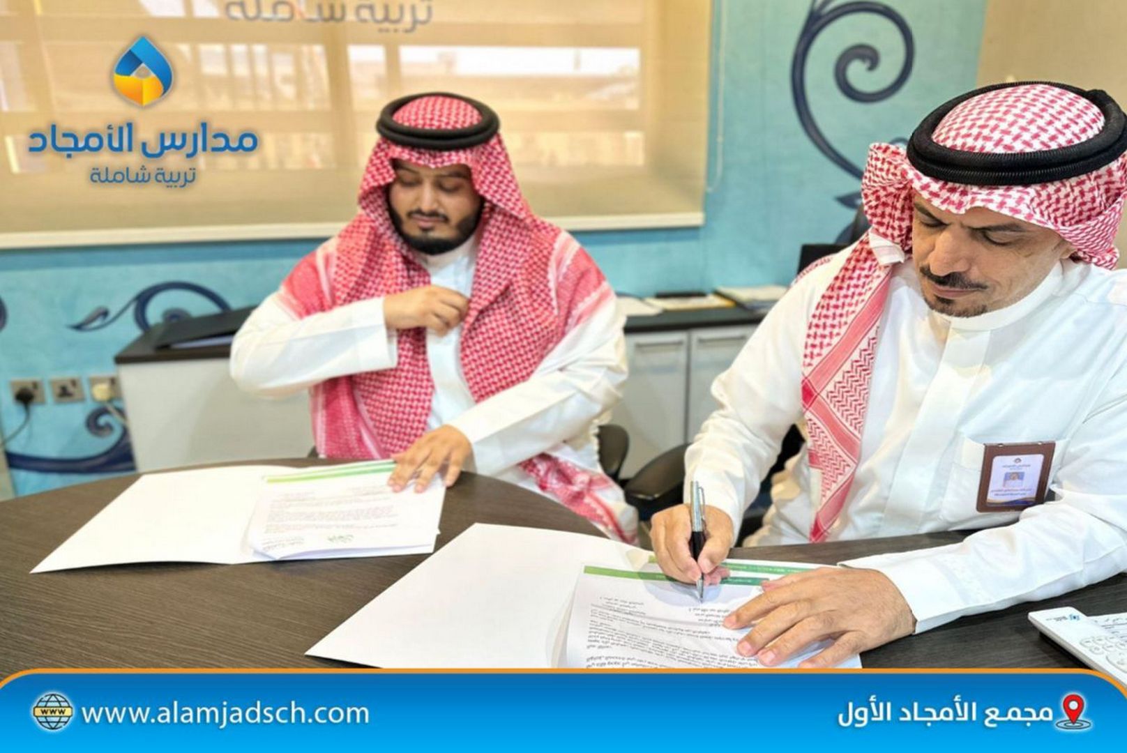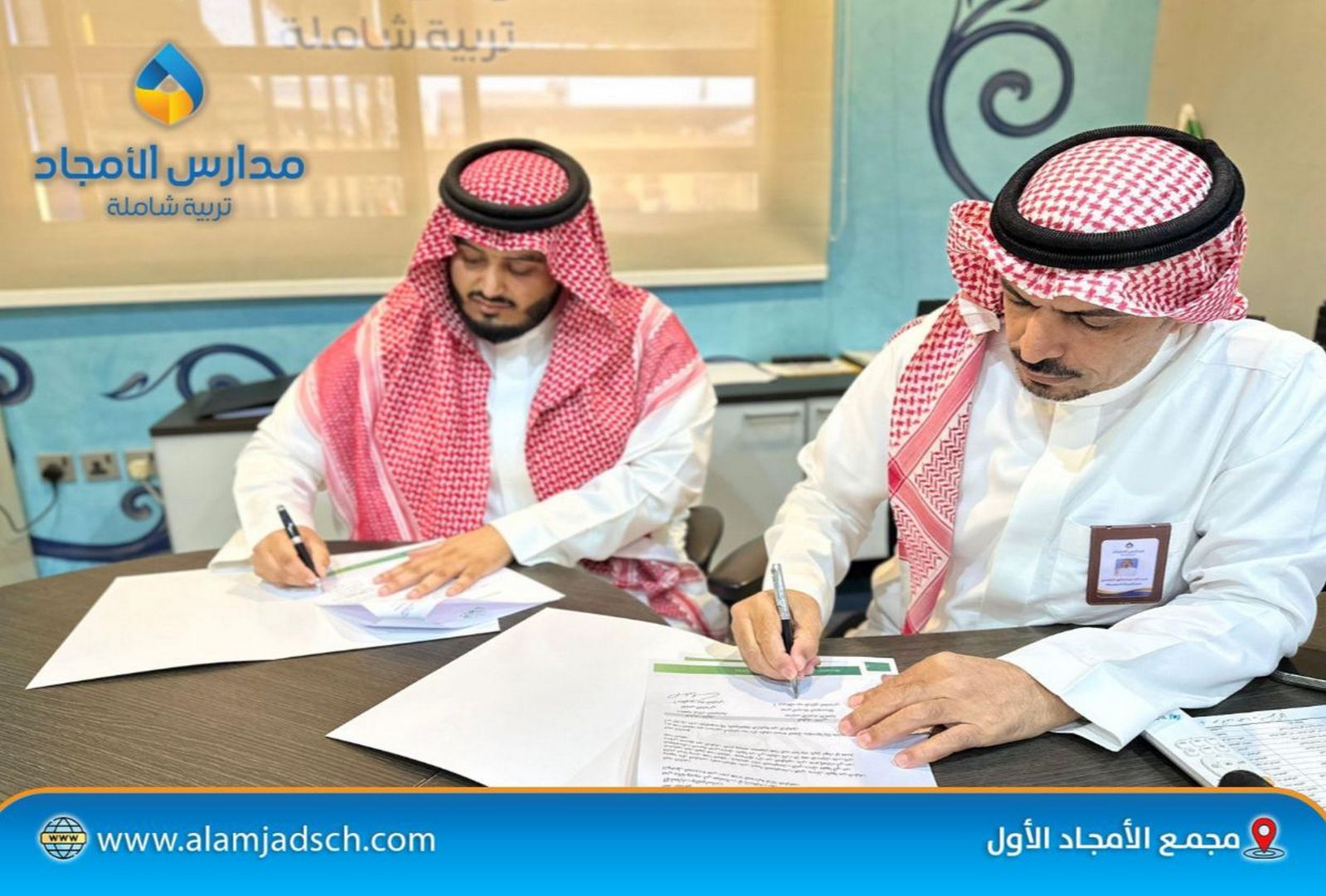 <p><strong>في إطار التعاون البنّاء بين مدارس الأمجاد المتوسطة وجمعية إجلال التعليمية،</strong><br /> تم – بفضل الله – توقيع <strong>اتفاقية شراكة</strong> لتنفيذ برنامج <strong>"100 سفير للتعريف برب العالمين"</strong>،<br /> الذي يهدف إلى <strong>ترسيخ المعرفة بالله تعالى وتعزيز القيم الإيمانية في نفوس الطلاب</strong>،<br /> من خلال <strong>مبادرات نوعية وأساليب تعليمية مبتكرة</strong> تسهم في بناء الوعي الإيماني وتعميق الانتماء القيمي لدى النشء.</p>